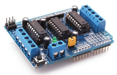 Arduino tiene pines de entrada y de salida para comunicarse físicamente con su entorno. Los pines de salida pueden dar una pequeña cantidad de energía que sirve por ejemplo para encender un LED, pero no pueden alimentar a un motor. Para ello necesitamos un circuito que haga de intermediario. Este circuito, el controlador o driver de motores, tomará energía de otra fuente (una pila, batería o equivalente) y siguiendo las instrucciones de Arduino hará funcionar el motor.